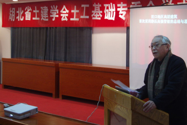 土工基础专业委员会于2006-1-18 在汉口湖北商业大楼会议室举办学术报告会,会议由副主任委员刘祖德教授主持,由湖北润海商发联合置业有限公司副总经理傅在龙高级工程师作题为“采用静压高强管桩的总结与思考”的学术报告。PHC高强管桩较之灌注桩有现场干净,燥声小,造价低等优点。刘教授高度评价了傅总在施工实践中勤于思考,并在桩基理论方面阐明了桩竖向下压承载力的确定方法之一---传统的静力公式不能简单地作为设计桩长的主要标准的机理,因此有较重要的理论意义和工程实用价值。