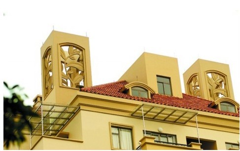 地中海风格在细节的处理上特别细腻精巧,在西班牙建筑中,经常广泛运用螺旋形结构配件,包括阳台、窗间柱子等多用螺旋形铸铁花饰。此外,在地中海建筑中往往采用建筑圆角,让外立面更富动感,并配合以落地大窗和防锈锻铁为装饰的小窗,外墙局部用文化石河特别的涂料;露台上采用弧形栏杆等;而装饰性用的烟囱,则带有传统的英国风味。