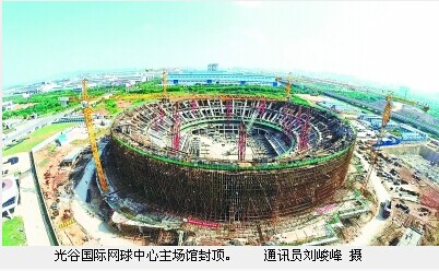 昨天,国内最大开闭顶网球馆——光谷国际网球中心的主场馆封顶。明年8月主场馆全部完工后,武汉将拥有一座媲美四大网球公开赛的全球顶级网球赛场。